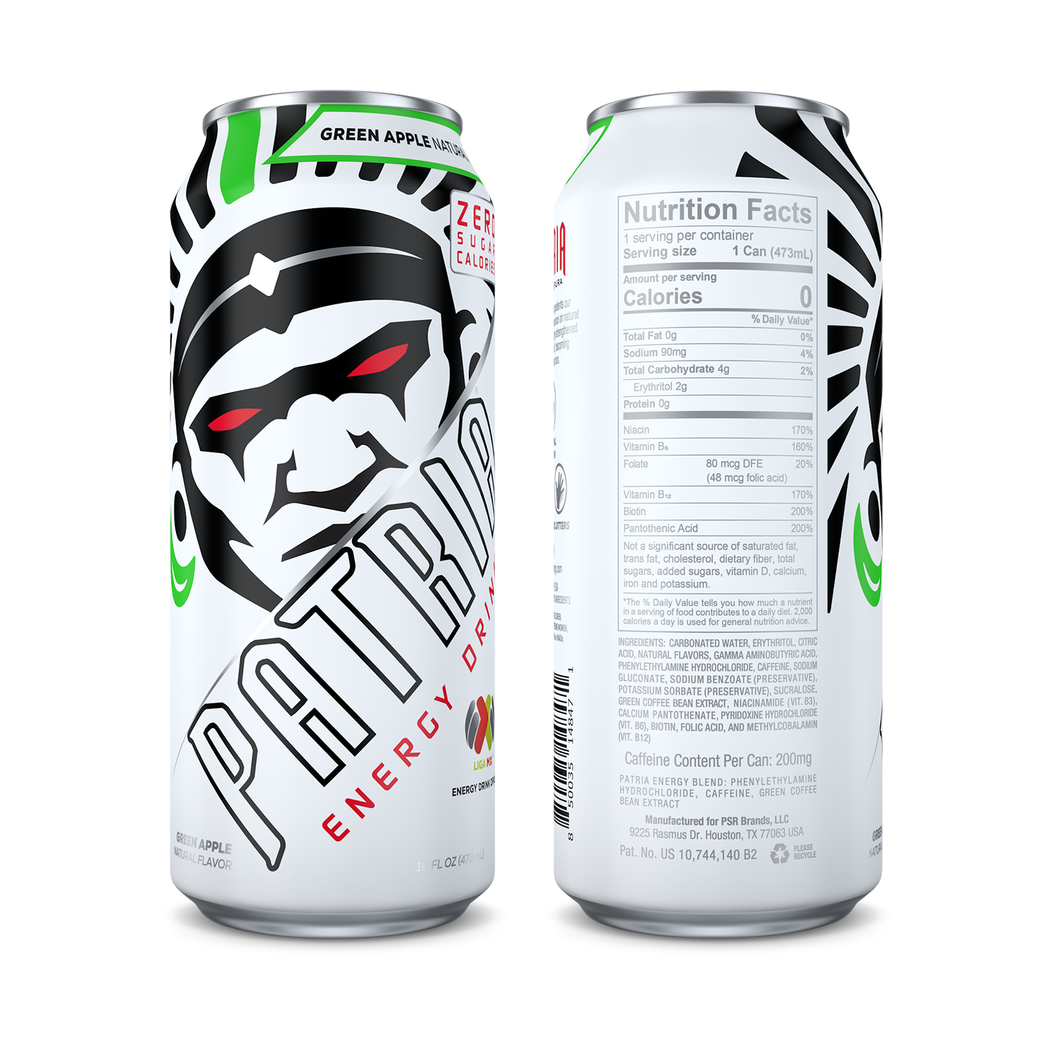 Patria Energy Drink - Green Apple - 16 oz Can (12 Pack Case)
