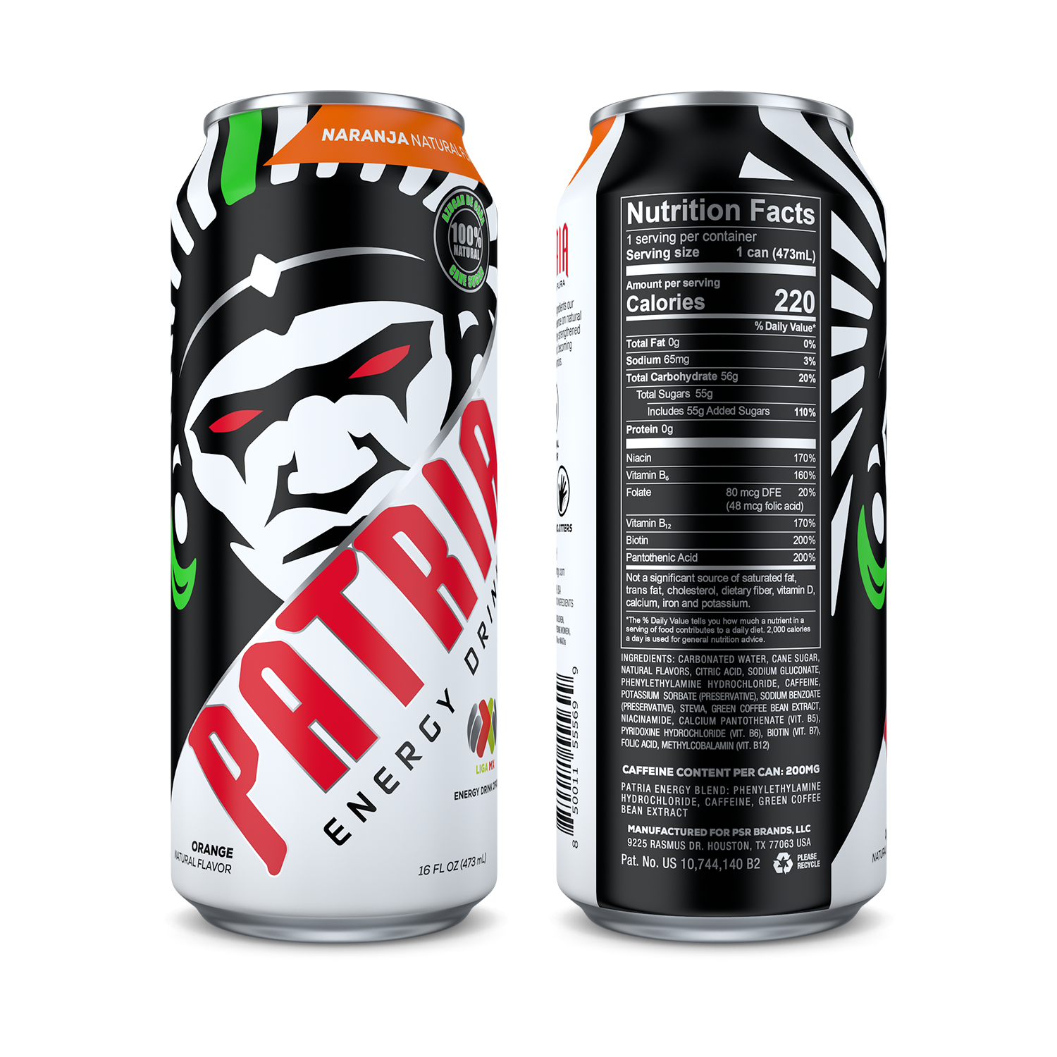 Patria Energy Drink - Naranja - 16 oz Can (12 Pack Case)